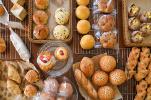 お芋のごまパン、蜂蜜を使用したクリームパン、志方牛カレーパンが人気。